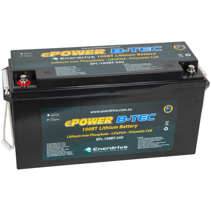 Available in 12v 100Ah, 125Ah, 200Ah and 300Ah capacities and 24v 100Ah & 36v 100Ah, the ePOWER B-TEC lithium battery is designed and intended for use in deep cycle applications where a single battery is required that meets the amp hour capacity.