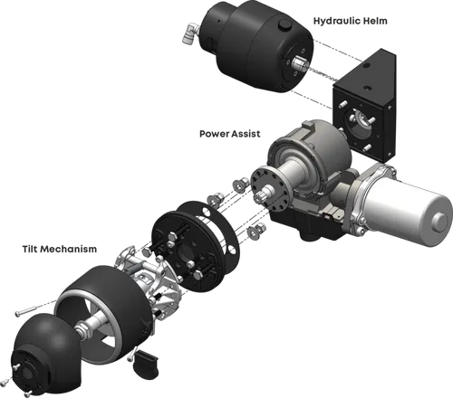 Power assist unit and pump are built onto the Multisteer Steerlyte Helm, not separate items.