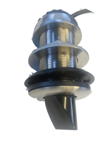 Proven installation using a standard 2” stainless thru-hull fitting which allows for a transducer plug design install and removal while boat is in water.
