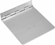 All stainless steel tabs are fabricated with a continuous rolled and pinned hinge. This design eliminates the need for welding. The tabs are made of corrosion resistant 12 gauge, 304 stainless steel and are available in standard finish (as shown), mirror finished stainless steel, or black powder coated stainless steel. Standard tabs are available in 9" (23cm) and 12" (30cm) chord lengths (chord is the length from the transom to the tab trailing edge) and in widths between 9" (23cm) and 48" (122cm). See specification chart for dimensional details. All tabs exceeding a 24" (61cm) width feature a 90 degree bent up trailing edge for additional strength. Edges can be turned up or down, made straight or tapered, and reinforced in any way. For galvanic protection, pre-installed zinc anodes are also available.
