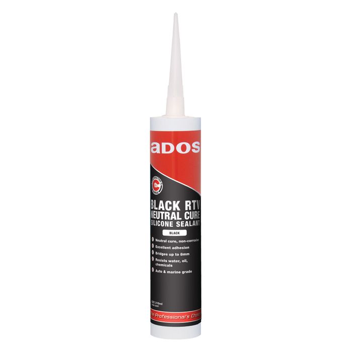 ADOS Black RTV Neutral Cure is a single component, general purpose, fast curing silicone formulated to seal and bond most materials. It is a non-corrosive, low odour sealant that quickly and effectively forms a durable, permanently flexible weatherproof seal at room temperature. ADOS Black RTV Neutral Cure has exceptional resistance to oil, grease, chemicals, weathering, temperature extremes, moisture and vibration, making it ideal for most automotive and marine sealant applications. It is capable of high joint movement up to 20%.