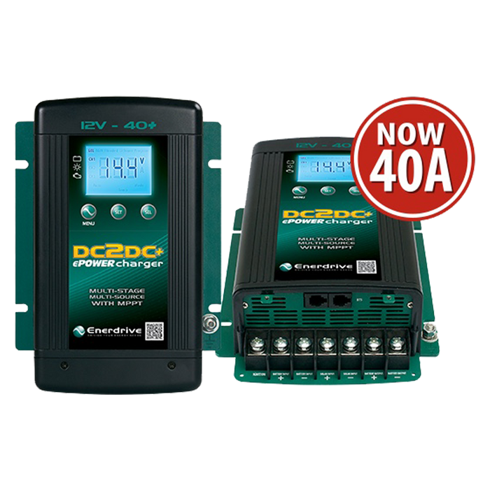 The Enerdrive ePOWER DC2DC+ Battery Charger is a fully automatic multistage, multi input battery charger with the ability to charge from either an alternator linked to a battery; or via solar power with the in built Maximum Power Point Tracking (MPPT) Solar Controller. With two inputs available, the main/house battery will be charged from either the engine while underway, or via the solar panels when stationary. The process to choose either engine or solar is fully automatic and both functions are controlled from within the unit itself without the need for external relays.