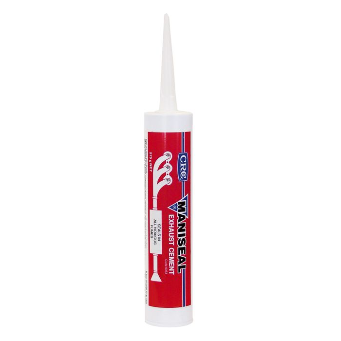CRC Maniseal Exhaust Cement is a sodium silicate based sealer for mufflers and tailpipes that resists high temperatures. It expands and sets when heated, ensuring a perfect seal against carbon monoxide and other noxious fumes.