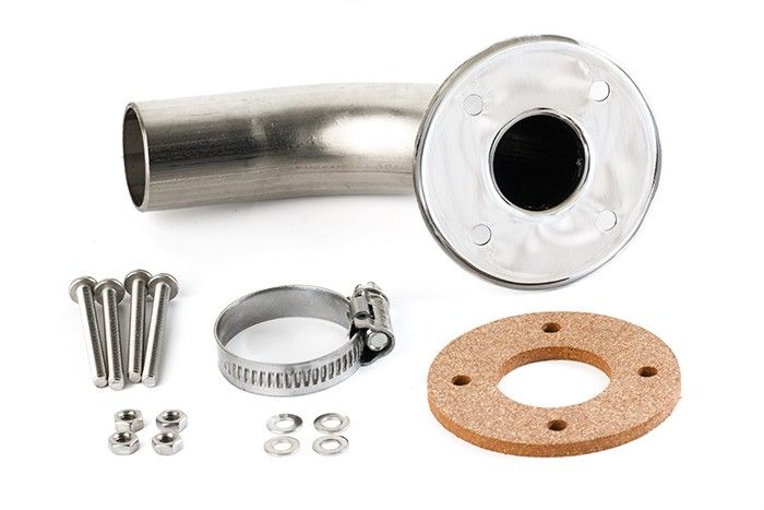 For singular exhaust systems. Made out of stainless steel, with highly-polished visible top.