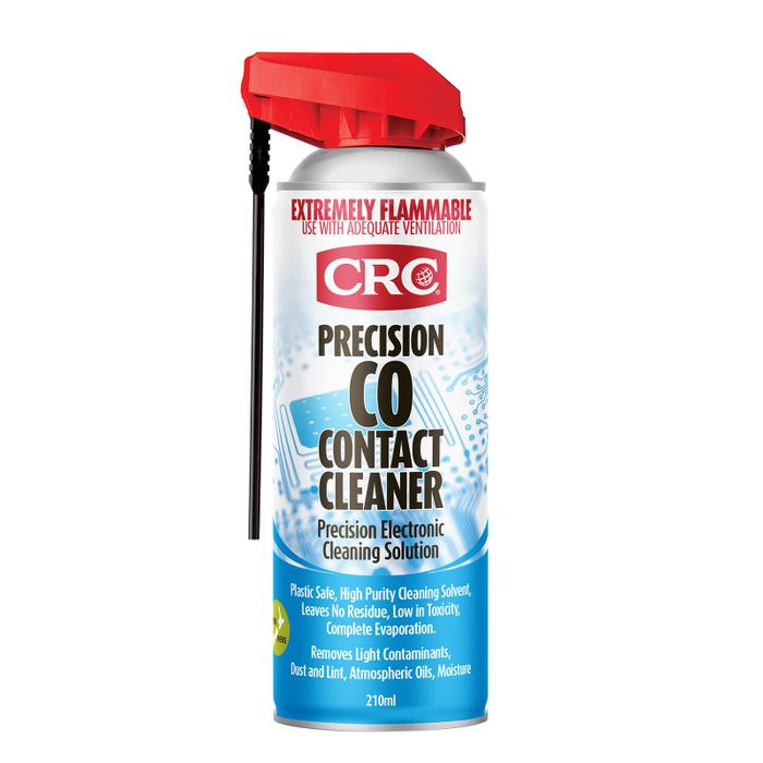CRC CO Contact Cleaner is a plastic-safe general-purpose evaporating cleaner and degreaser for use on sensitive electronic and electrical equipment. It is formulated to quickly penetrate into hard-to-reach areas and effectively flush away carbon deposits, dirt, light oils, dust, lint and other light contaminants. CRC CO Contact Cleaner as part of a regular maintenance programme will eliminate carbon deposits and other contaminants that hold moisture and cause corrosion or arcing. An increase in resistance will indicate the frequency of re-application.