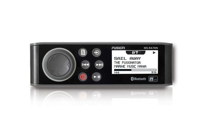 Introducing the MS-RA70N, Fusion’s sleekest value-packed marine stereo, designed to deliver a quality on-water entertainment experience by incorporating some of the latest marine technologies. The MS-RA70N is engineered to seamlessly replace any standard DIN sized non-marinized stereo without the need to reconfigure dash space. Clever styling gives the installer the option of either mounting the stereo with a conventional flush finish or integrating it flat into a glass helm, ensuring a high-end finish to the installation.