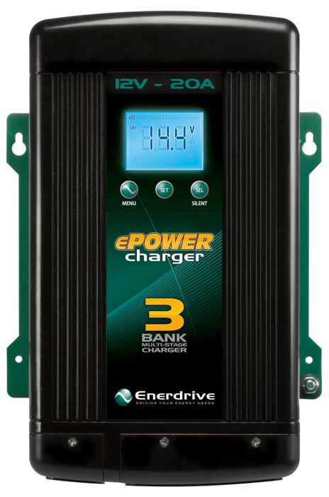 The Enerdrive ePOWER 20A Battery Charger is a fully automatic, “set and forget” charger. It is designed to quickly and accurately recharge your batteries using algorithms that help maximise service life. Multistage smart charging technology enables the charger to be connected to your battery banks permanently.