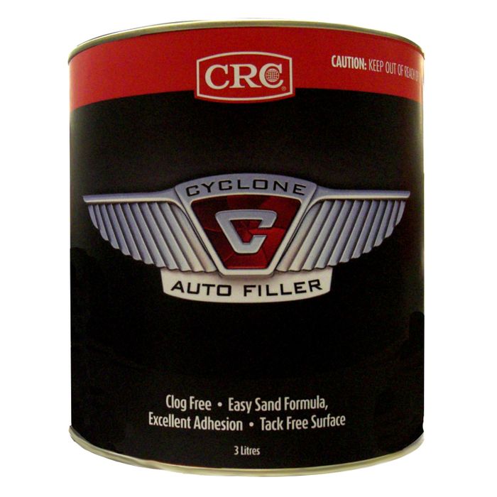 Its unique formula upon hardening offers a tack-free finish that will not clog sandpaper. This makes sanding easier and quicker. In normal conditions when mixed in right proportions, CRC Cyclone Auto Filler will gel in 8-10 minutes and full harden ready to finish within 10-20 minutes depending on the ambient temperature.