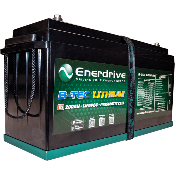 Available in 12v 200Ah capacity, the Enerdrive B-TEC G2 lithium battery is designed and intended for use in deep cycle applications where a single battery is required that meets the amp hour capacity.